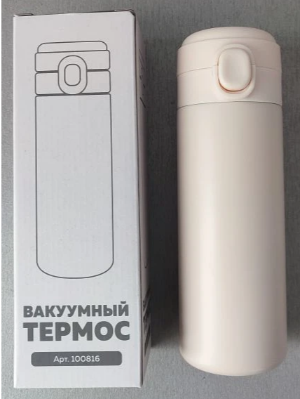 - Термос, внутренняя колба: высококачественная нержавеющая сталь 304, внешний корпус – пластик. Объем: 400 мл. Размер: диаметр 6,6 см высота 20 см.