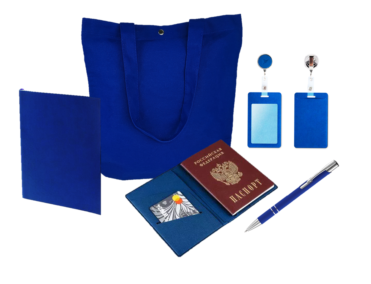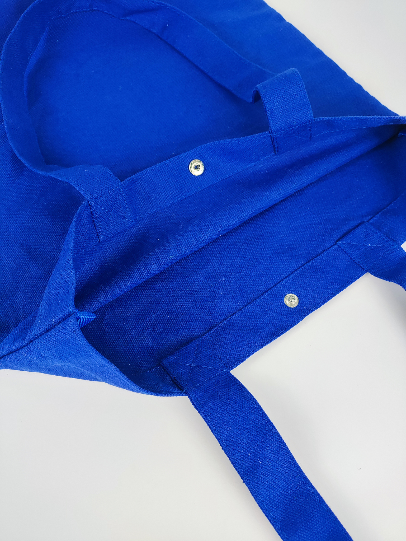 Упаковка: сумка-шоппер синий, с кнопкой и донной складкой.